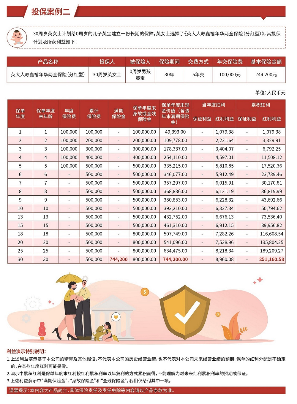 本产品为分红型保险产品,您可以保单红利的形式享有其盈余分配权,未来的保单红利为非保证利益,其红利分配是不确定的,在某些年度可能为零。